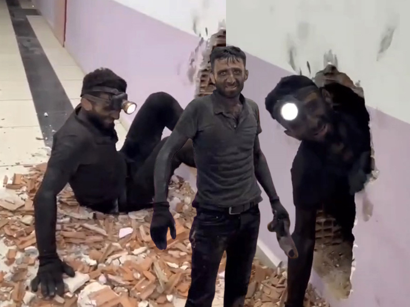 Matkapla çalışırken baca boşluğuna düştü. Birinci katta durdu, kurtarmak için duvar kırdılar