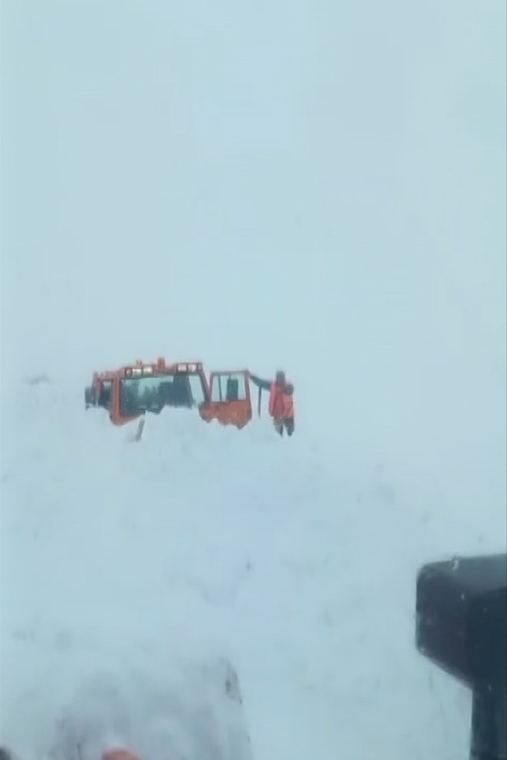 Muş-Kulp kara yolunda iş makinesinin üzerine çığ düştü