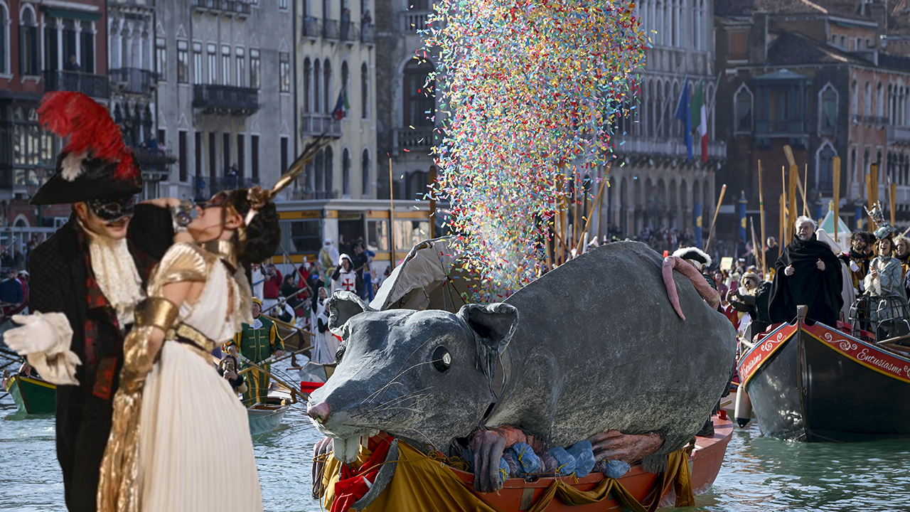 İtalya'nın Venedik kentinde düzenlenen Venedik Karnavalı, hafta sonunda gerçekleştirilen balo ve su geçidi töreniyle başladı.